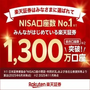 楽天グループのサービスと密接に連携している証券会社。楽天カード・楽天市場・楽天銀行を使っている人なら、投資でポイントが貯まる&使える仕組みで圧倒的におトク。総合口座数1,300万突破の大手だから、安心して始められます。